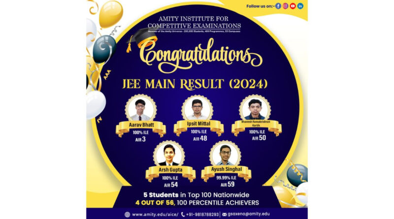 The post Amity Institute of Competitive Examinations (AICE) Celebrates Outstanding Performance in JEE Main 2024 appeared first on OUR INDIA.