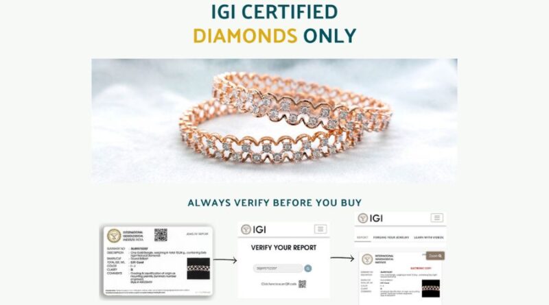 An alternative, yet just as reliable, certification for the authenticity of solitaires is the International Gemological Institute (IGI). One of the top gemological institutes, IGI’s detailed reports on gemstones are composed of the diamond count on your diamond jewellery as well as the cut, color, clarity and weight of every piece of diamond.