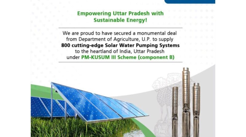 Lucknow (Uttar Pradesh) [India], October 12: KSB Limited, one of the leading Pumps and Valves manufacturers in India, having its solar manufacturing based in Sinnar, Maharashtra, recently secured a prestigious Letter of Award (LOA) from the Department of Agriculture, U.P. The LOA, worth INR 27.78 Crores, is for the supply of 800 solar water pumping systems under the PM-KUSUM III scheme’s Component B. This significant milestone reflects KSB Ltd.’s dedication to contributing to sustainable agriculture and promoting renewable energy solutions in India.