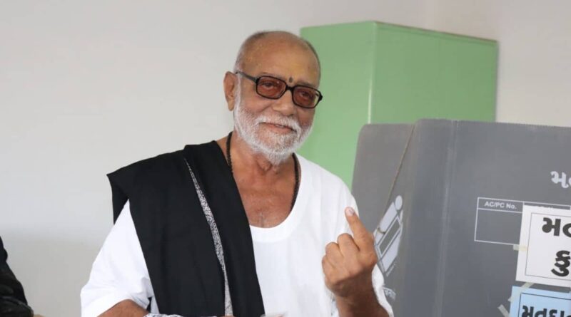 Renowned Spiritual Leader Morari Bapu Exemplifies Civic Duty, Casts Vote in Lok Sabha Elections
