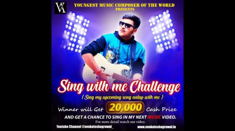 Chhattisgarh (India), November 1: Venkatesh Agrawal, the world’s Youngest Music Director, and Songwriter, is making headlines again, not just for his extraordinary talent but also for his innovative approach to music and his unwavering commitment to his fans. In a groundbreaking move, the 17-year-old prodigy challenges the world to sing with him in his upcoming song “Aalap,” offering an incredible 20,000 cash prize and a golden opportunity to feature in his next music video.
